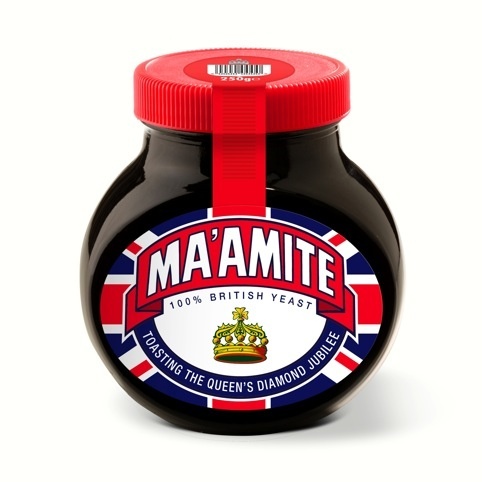 My absolute favourite example of Jubilee commemorative packaging. It's taking the humourous side of it all, appealing to it's customer base and celebrating the Queen's Diamond Jubilee in style. Although I think you'd have to be liverpudlian to pronounce the Ma'am in Ma'amite to address the Queen correctly. It's Ma'am as in ham apparently. Originating in the UK back in 1902 Marmite outdates the Queen by quite some years, so it's only right that they should acknowledge the celebration.