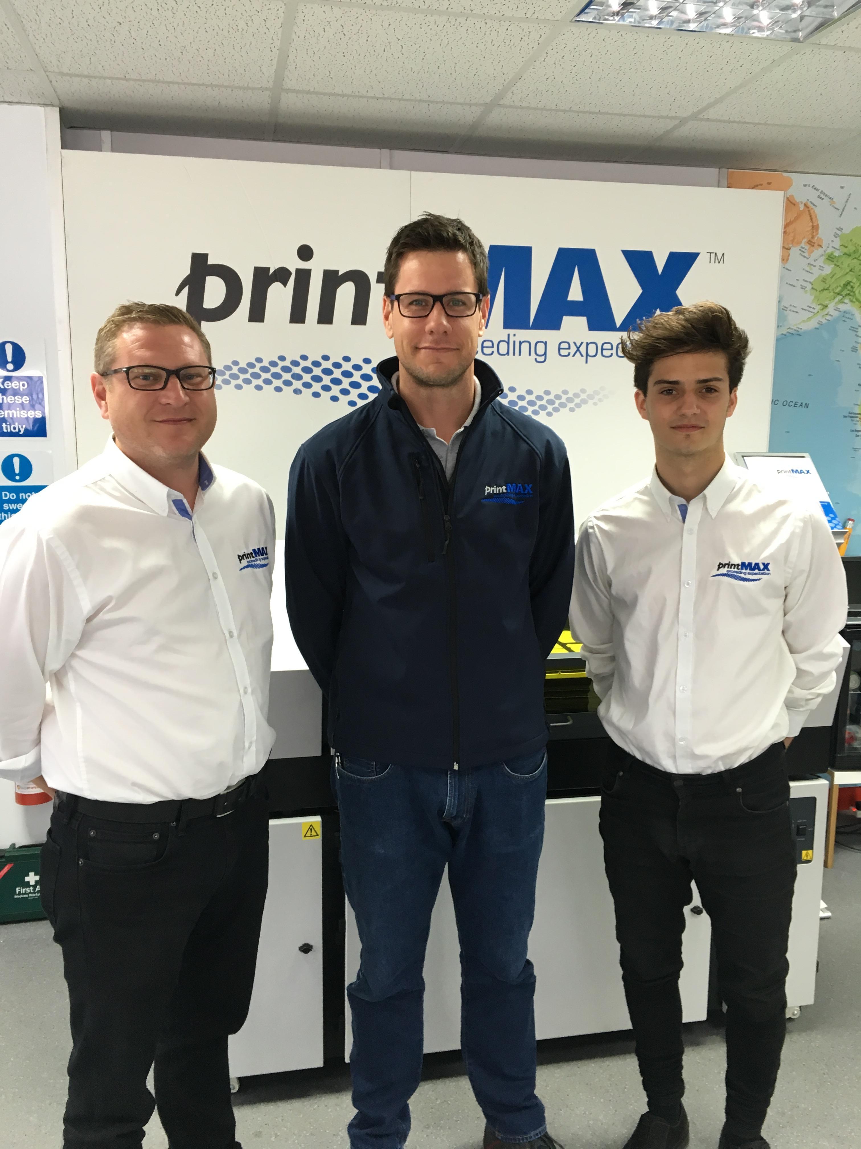 printMAX welcomes industry experienced Stewart Cobby (Sales manager), returning South African Shane Barrett (Technical consultant) and fresh blood Jamie Stoker (Sales support consultant).